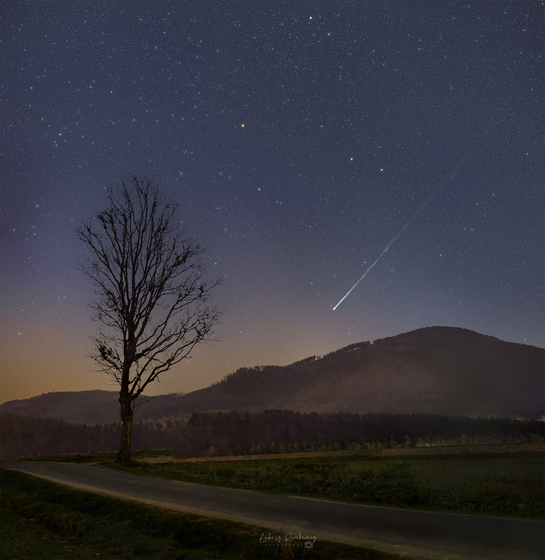 p 🌠 Comet Lemmon (C/2025 A6) captured above the Větrný mlýn windmill in the Cze...