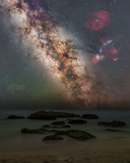 p A multi-panel panorama showcasing the arch 🌌 of the winter Milky Way ov...